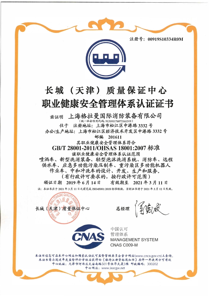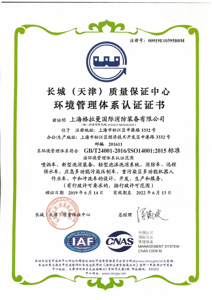 6月14日公司获得了长城质量保证中心颁发的环境管理体系认证证书和职业健康安全管理体系认证证书。