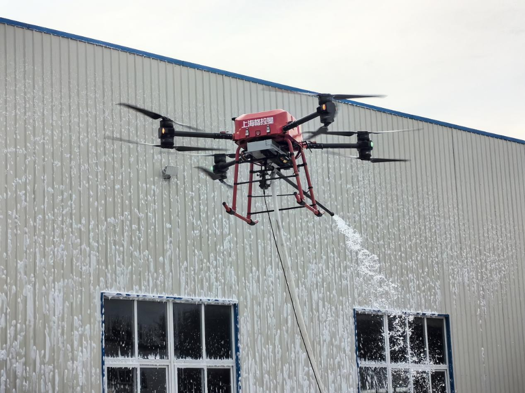 记者在螺山路厂区看到了高空系留无人机灭火消防车的演示过程。只见系留无人机与消防水带连接后,在飞手的控制下用时4分钟左右,稳定攀升至150米高空。其间,先演示了这款产品的泡沫挂壁性能,体现了良好灭火效力,后系留无人机连接的消防水带持续喷射泡沫液并处于良好的可灭火工作状态。