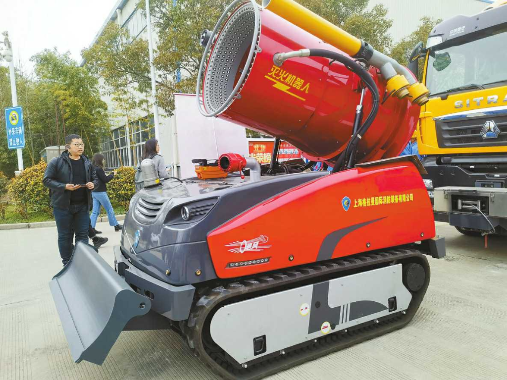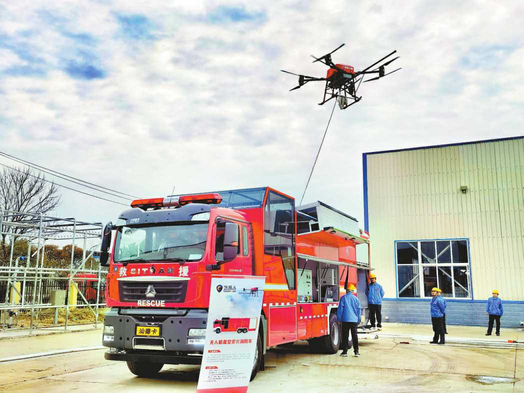 “高层建筑灭火救援难度极大,属于世界性消防难题。”海伦哲副董事长兼总经理尹亚平告诉记者,“我们这款消防车的载液量目前在国内外相似产品中处于领先地位,车辆配有发电装置为无人机提供动能,可长时间实施空中作业。”顺着尹亚平手指的方向,记者看到消防车前端设置有飞控指挥舱指挥,舱顶部和周边安装有防弹玻璃,以确保飞手的飞控安全。