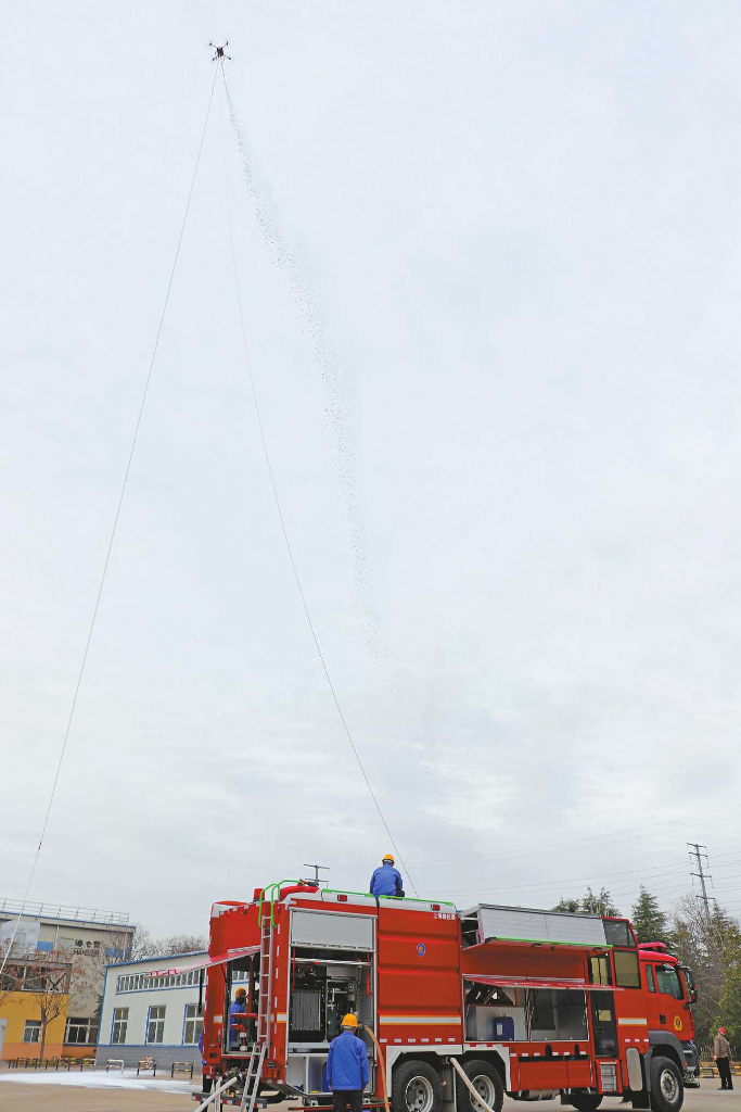 “灭火系统也是针对无人机灭火专门研制,后期将逐步形成180米、200米系列产品。这款车可以有效解决高层消防痛点问题,提高消防应急救援能力,保护消防作战人员的安全。我们的使命就是让现代消防作战变得更安全、更高效、更智能。”尹亚平说。