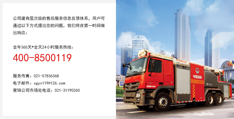 公司建有一支专业的产品售后服务队伍,常年为用户提供专业、优质、完善的售后服务,对用户提出问题和车辆在使用中遇到的故障,在保质期内30分钟内响应,12小时内到达现场,24小时内修复。保质期外,亦在30分钟内响应,12-24小时内到达现场,36小时内修复,并优惠提供维修配件。
